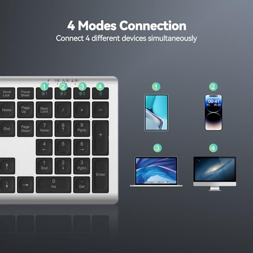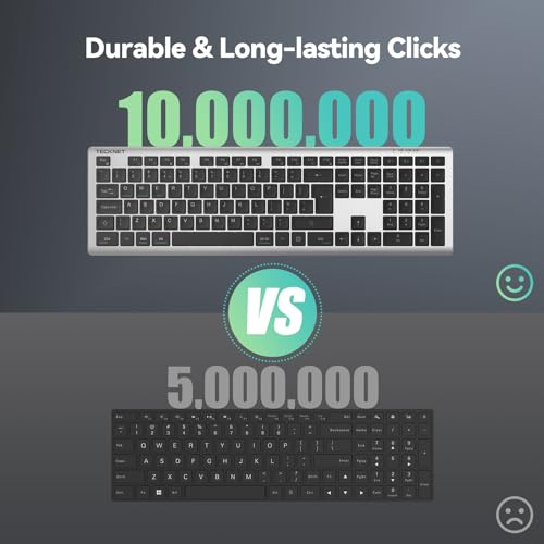 TECKNET Wireless Keyboard, Rechargeable 2.4GHz USB Bluetooth Keyboard for 4 Multi Devices, Ultra Slim Full Size UK Layout Keyboards for Computer, Laptop, Tablet, Smart TV, Phone