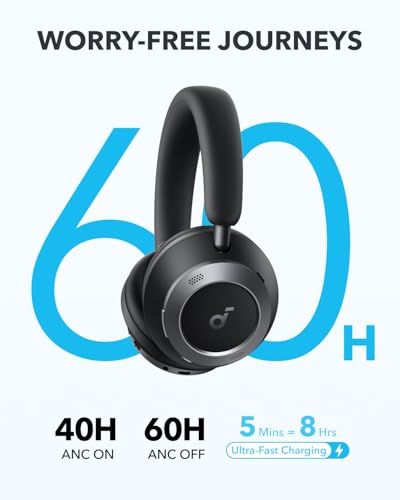 60 Hours Nonstop Playback with Ultra-Fast Charging: Enjoy audio that lasts for days with ultra-fast charging for 8 hours of playback in just 5 minutes. Space One Pro boasts an impressive 40H battery life with ANC on, and 60H with ANC off.