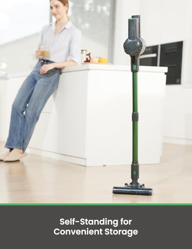 【Self-Standing and Easy to Store】Featuring a self-standing design, the V9PRO stick vacuum cordless rechargeable can be placed wherever desired, free your hands. It comes with a 2-in-1 brush and a long crevice tool, and has an accessory storage holder to prevent loss, keep your home tidy.