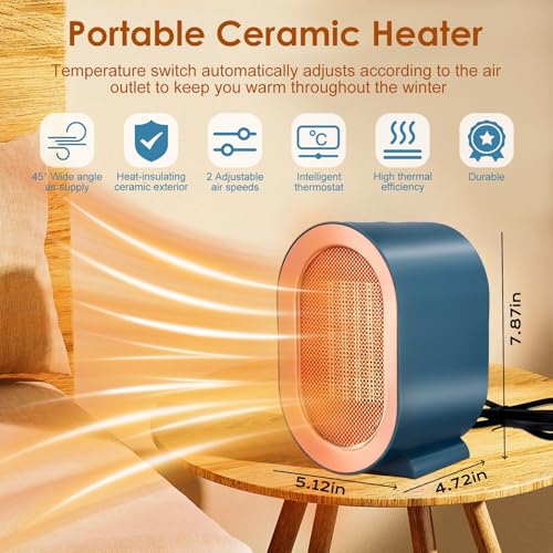 🌞【Energy Saving & 2 Speeds】This space heater offers 2 heating settings, low/800W and high/1200W. 45° wide-angle air supply with high hot air coverage for efficient heating and effective reduction of energy consumption. The power switch is easy to use, you can choose the right mode as needed, allowing you to keep warm while reducing heating costs. You don’t have to waste a lot of money on central heating. Perfect for indoor heating such as office, desk, home, bedroom, living room, etc.