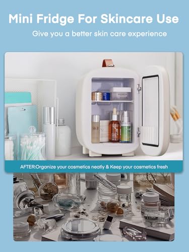 ❄️【Super Quiet】This mini fridge for bedrooms quiet can operate at a sound of less than 28dB while being 8-16℃ below room temperature. Meaning this mini fridge will not disturb you whilst you work, travel or sleep! It is also a good choice to store skin care products to slow down their deterioration.