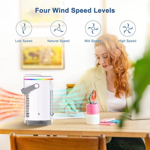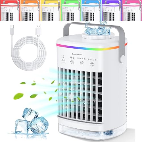 Joomouney Portable Air Cooler, 3-in-1 Evaporative Air Cooler, Portable Air Conditioner With 4 Wind Speed & 7 Colour Lights & 700ml Water Tank & 2-8H Timer, Personal Air Coolers for Home Office Bedroom