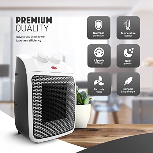 [/script]KEPLIN Ceramic Electric Fan Heater – White I 2000W Low Energy Consumption Space Heater I 2 Heat Modes, Tip-Over & Overheating Protection, Adjustable Thermostat I Mini Portable Heater for Home & Office - Izzgadgets.com