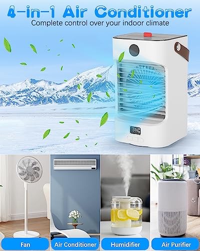 Portable Air Conditioner, 4-in-1 Small Air Conditioner, 4000mAh Air Cooler Fan, Personal Mini Air Conditioner, Evaporative Air Cooler with 7Night Light, Air Conditioning Unit for Home, Office