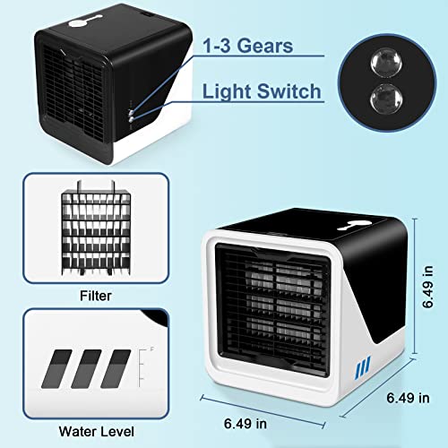Portable Air Conditioner, Personal Cooler Fan, 3 in 1 Evaporative With Large Capacity Water Tank, Quiet Mini Conditioner Desk Cooling Fan for Home, Bedroom, Travel, and Office