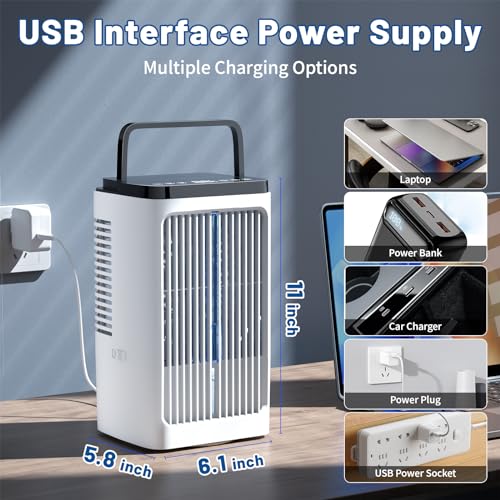 Portable Air Cooler Fan: This USB air cooler fan with the portable handle design can be easily moved. Come with the USB cable, you can take it to wherever you need, such as room, apartments, campers, offices, bedrooms, kitchen or living rooms. It is a must-have tool for hot summers.