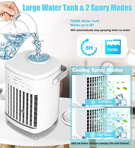 Portable Air Cooler, Mini Mobile Air Conditioner, RGB 7 LED Light, 4 Speeds, Timed function Modes Room Cooler, Air Coolers for Home, Office, Bedroom