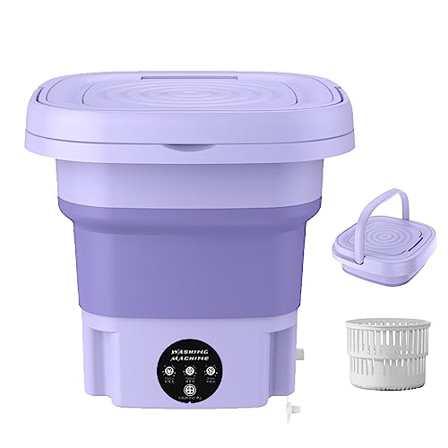 Portable Washing Machines with Drain Basket, 8L 3 gear timing Mini Washing Machine Strong cleaning automatic Washing Machine Spin Dryer 1.2KG for Underwear, Baby Clothes, Socks purple