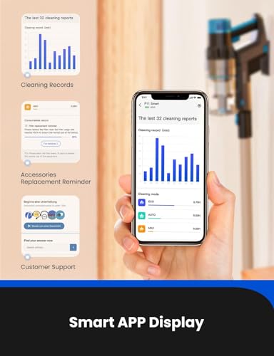 Smart App Display: Connected the Proscenic App (via Bluetooth) get accessory replacement reminder, check error information, and track your cleaning reports. There’s also troubleshooting help and online customer service to help you solve problems faster.