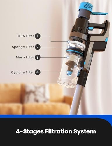 Powerful 30kpa vacuum cleaner: cordless vacuum cleaner offers 3 suction modes. Max mode generates 30000pa suction, which meets your all different types of cleaning needs.
