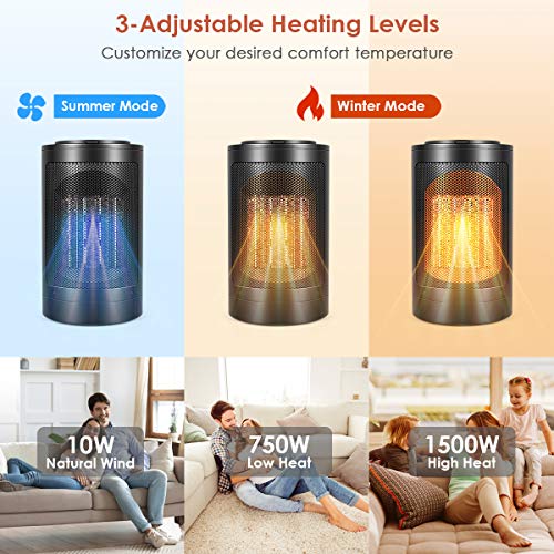 🔥 【Get Nice & Toasty Faster】This Eco Ceramic Heaters for Home Low Energy advanced PTC ceramic heating technology combined with the ultra-efficient fan will heat up any space faster and distribute the heat more evenly. Just turn on your Portable Space Heater, count to 5, and enjoy your warm living room, bedroom or office.
