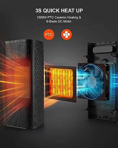 Rapid Heating with PTC Ceramic Technology: Powered by a direct current (DC) motor and equipped with 9 precision-engineered blades, our electric heater boasts cutting-edge PTC ceramic heating technology. Experience the marvel of rapid 3-second heating that emanates from this advanced technology, enveloping you in soothing warmth almost instantly. Its compact size allows versatile placement options – whether on a desktop, countertop, bedside table, or even placed conveniently on the floor.