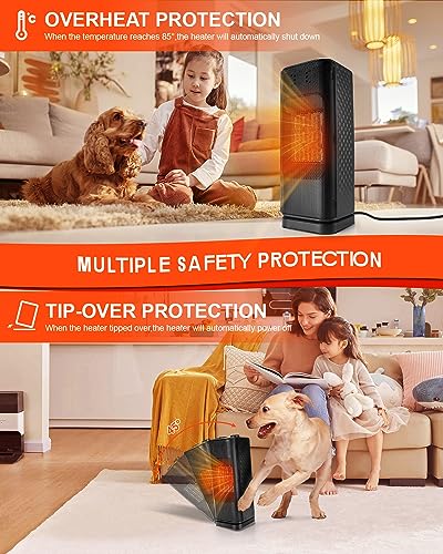 70° Oscillation & Optimal Dimensions: Delight in the generous 70° oscillation, coupled with a wide-angle warmth distribution spanning 120°. This intelligent design promotes rapid heating, ensuring that your space becomes cozy and inviting quickly. Our ceramic heaters, measuring 35x14x14cm, goes beyond conventional small heaters, providing a 20% improvement in heating coverage. Its enhanced performance doesn’t compromise portability, making it a perfect fit for bedrooms, living rooms, kitchens, pet rooms, offices