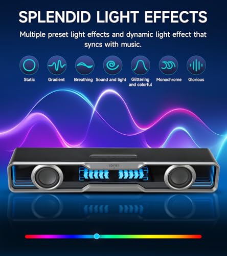 Edifier QS30 Multimedia Soundbar with Dynamic Lighting, Bluetooth V5.4, Enhanced Bass, Integrated Mic, Multiple Sound Effects, USB Powered Speaker for Desktop/PC/Laptop/Tablets – Black