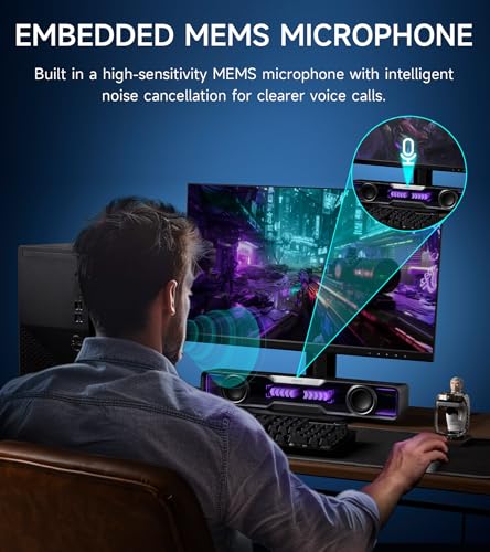 [Expertly Tuned Sound] The acoustic design includes dual independent cavities with two 2″ full-range drivers delivering 5W (RMS) total output. Two symmetric bass reflex channels enhance bass for dynamic rhythms. Silicone foot-pads tilt the speaker upwards, directing sound to ear level when placed under a computer screen.