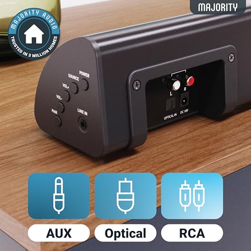 MAJORITY Bluetooth Sound Bar for TV | Built-in Subwoofer | 120 Watts 2.1 Channel Sound | RCA, Optical, and AUX Connection | Wall Mountable | Remote Control included Snowdon TV Soundbar