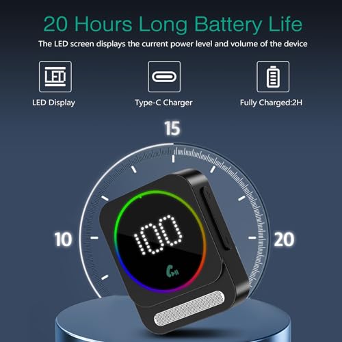 Power Display & Long Battery Life: The 3.5mm car Bluetooth AUX adapter has an LED display that allows you to directly check the current power and volume of the device. The Bluetooth AUX receiver can be fully charged in just 1 hour using the Type-C fast charging cable (included). And car Bluetooth adapter can last for 20 hours after being fully charged. You can also use it while charging