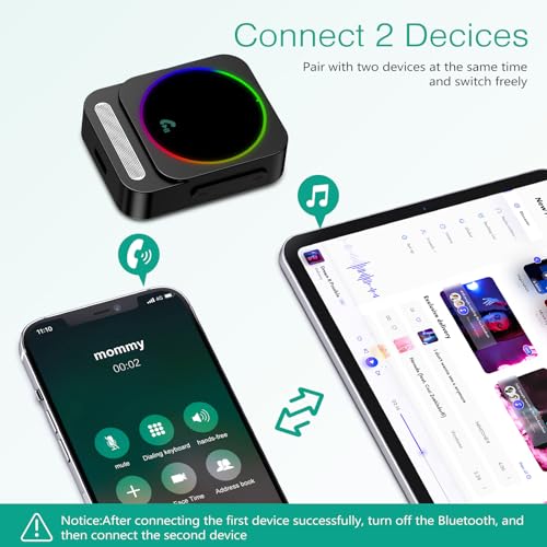Dual Connectivity & Wide Compatibility: This Bluetooth receiver for car can connect two devices (cell phone/tablet/Bluetooth headset) at the same time. It can also convert non-Bluetooth devices to Bluetooth devices for wireless connection, suitable for cars, speakers, stereo systems and headphones