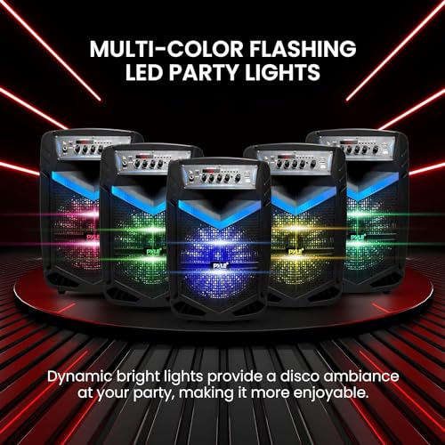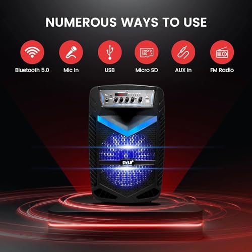 Pyle, Portable PA Speaker, Bluetooth- Loudspeakers, 600W Rechargeable w/ 10” Subwoofer 1” Tweeter, Pa System w/Wireless Microphone, Dj Speakers, w/Recording Function/Mic Input/Lights/USB/SD/Radio