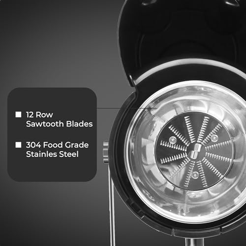 【EFFICIENT & FAST JUICING】The juicer machine has food grade sharp blades which makes the juice efficient and fast. It is equipped with a 500w power motor with a stainless steel sawtooth which separates the pulp and extracts the fresh juice.