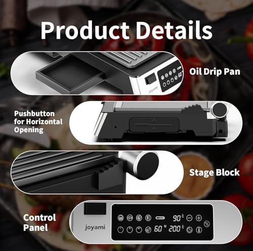 JOYAMI Smokeless Indoor Grill, 2000W, non stick, Healthy, Griddle, Toastie, Steak, Panini, BBQ, Sandwich, Easy clean, Removable Plates, 8 Grilling Programs, Temperature Control, Garden