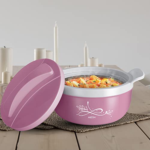 Milton Casserole For Hot Food, Insulated Stainless Steel Hot Pot With Lid, 74 Oz, Serving Box (Bowl, Dish) For Food And Roti 2500 Food Warmer Cooler, Crave – Pink