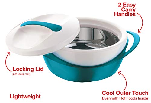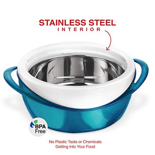 Pinnacle Large Insulated Casserole Dish with Lid 2.6 qt. Elegant Hot Pot Food Warmer/Cooler -Thermal Soup/Salad Serving Bowl Stainless Steel Hot Food Container–Best Gift Set for Moms –Holidays Teal