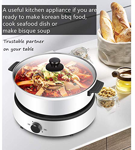 Stepless Temperature Adjustment: Turn on and adjust the temperature of the hot pot through the round knob to cook different types of food. Use high heat to fry steak and making soup, and use low heat to cook noodles or make chili sauce or cheese sauce.