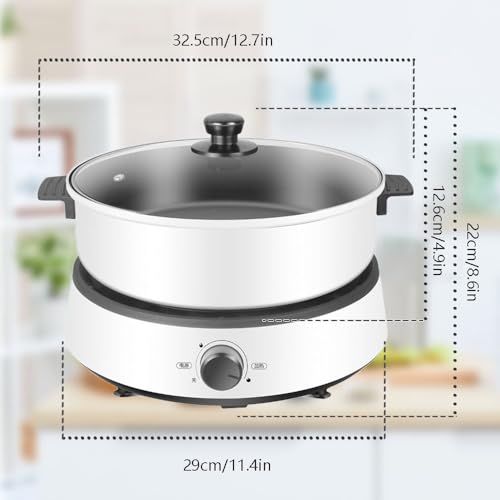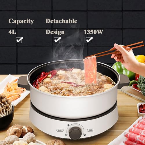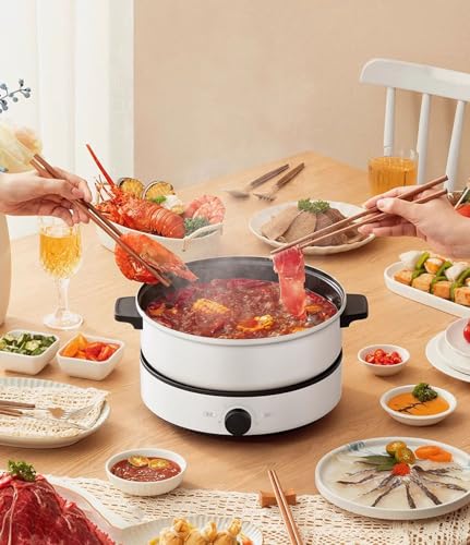 Primst Multifunction Electric Cooker with Handle, 4L Electric Shabu Shabu Hot Pot for Frying Grilling BBQ, Electric Hotpot for Party, Family and Friend Gathering (White)