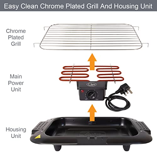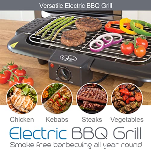 Quest 35910 2000W Indoor Electric Smokeless BBQ Grill/Adjustable Temperature Gauge/Portable and Easy Clean/Water Filled Drip Tray To Reduce Smoke & Odours/Black