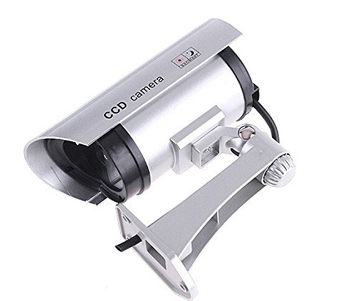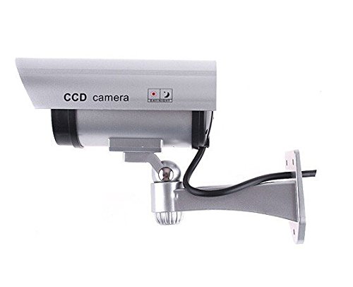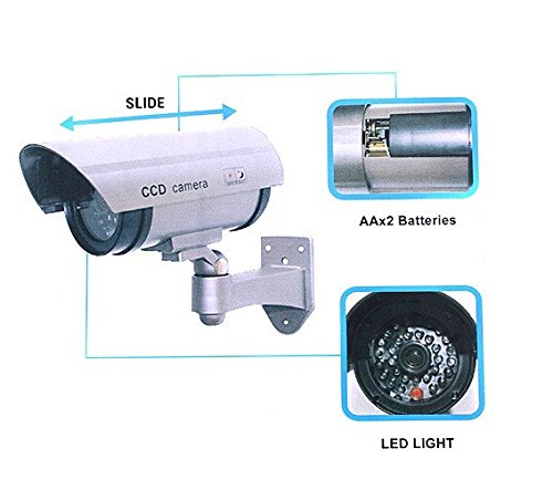 BW Dummy Cameres Outdoor Indoor Fake Dummy Imitation CCTV Security Camera W/Blinking Flashing Light Bullet Shape Silver