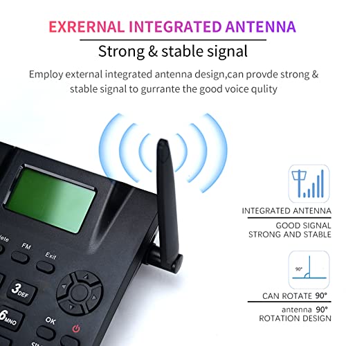 【Multifunctional】:This wireless GSM quad-band desktop phone supports multi-language functions, redial, pause, handsfree, hold, SMS, alarm clock, calendar and FM radio functions. Ideal for home, hotel, office, call center, etc.