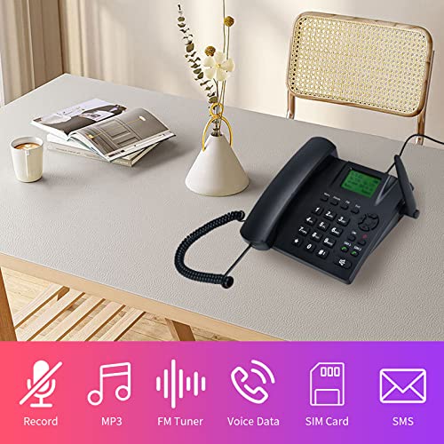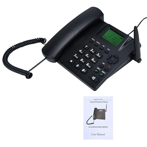 Lychee Telephone Fixed Wireless Phone,Wireless Quad Band GSM telephone – Dual SIM, Supports Multiple Languages, Large Backlit Display, Office phone, corded landline phone, hotel/residence (Black01)
