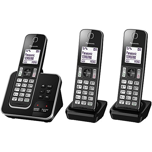 Panasonic KX-TGD323 Cordless Home Phone with Nuisance Call Blocker and Digital Answering Machine – Black & Silver (Pack of 3)