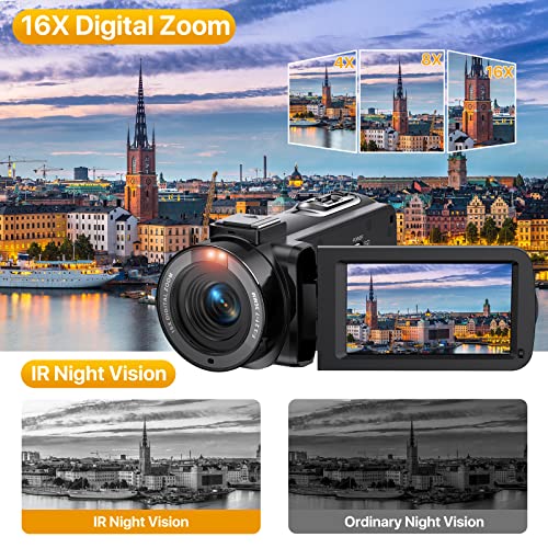 DPFIHRGO Video Camera 1080P Camcorder FHD 36MP Youtube Vlogging Camera IR Night Vision Camcorder 3.0″ LCD Touch Screen 16X Digital Zoom Camera Recorder with Remote Control and 2 Batteries