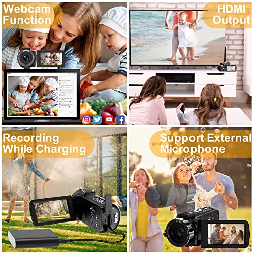 【Video Camera Camcorder】The video camera is full HD 1080P, with 36.0MP picture resolution,3.0 inch 270° rotation IPS ultra-clear screen and 16X digital zoom camera. It also has 8 mega pixel CMOS image sensor, you can capture vibrant and extremely realistic images and videos. This video camcorder has built-in microphone and it supports external microphone which enhances sound recording volume and reduces noise(Microphone Not included).