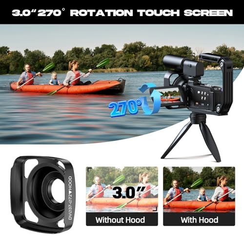 HOTPEAK Camcorder Video Camera 5K 56MP WIFI YouTube Vlogging Camera 3” 270° Rotatable Touchscreen Podcast Camera Recorder with 64G SD Card,Microphone,Handheld Stabilizer,Hood,Remote,2 Batteries,Tripod