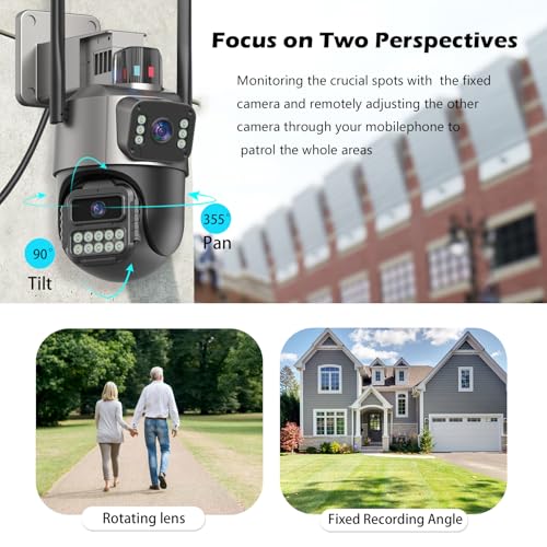 【2 in 1 Outdoor Cameras & IP66 Waterproof】 Dual lens outside camera can capture two areas simultaneously to record more detail in full view. 4MP PTZ 24/7 Recording motion camera provide is perfectly for more comprehensive protection for your outdoor and indoor safety. IP66 waterproof outside cameras is a good choice for use in rainy day, snowy day, and extreme weather. Use for Parking Lot camera, Warehouse cameras, outdoor/indoor.