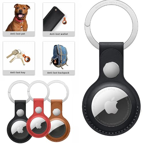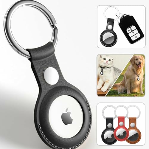 Leather AirTag Keyring Case For Apple Airtag Holder Compatible with Apple New AirTag Dog Collar(Black)