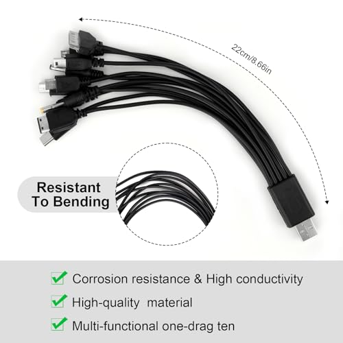 ✔️Universal Compatibility: This 10-in-1 USB cable can be used to charge your devices with USB charger plug, car charger, travel adapter, or direct from your PC/Laptop USB port.