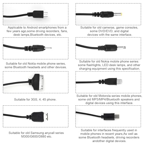 ✔️Universal Charger: 10 in 1 Universal USB Charger Cable For iPod, iPhone, PSP ,Camera, Nokia, HTC,LG, Samsung,BlackBerry; Multi-Funcation Charger Cable For mobile Phone/smart phone /mp3/bluetooth speaker /and other Device. You can charge for your old devices.