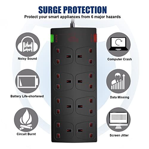 Multiple Protection: Built with high-quality components and enhanced circuitry, anti-thunder protection and surge protection, this power strip is protected against over-voltage, over-current, short-circuiting, overload, offering more safety for household electric appliances and a peaceful mind while charging.